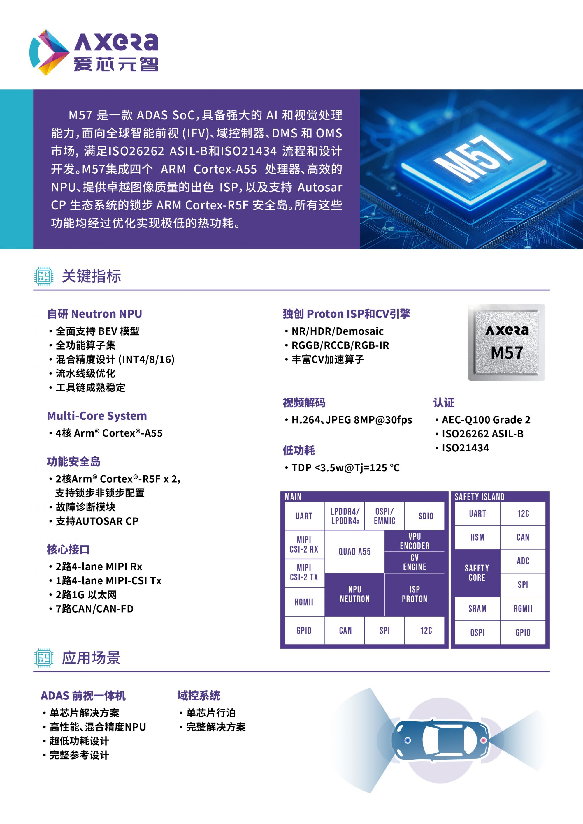 M57ADAS SoC,应用于ADAS前视一体机、域控制器等。