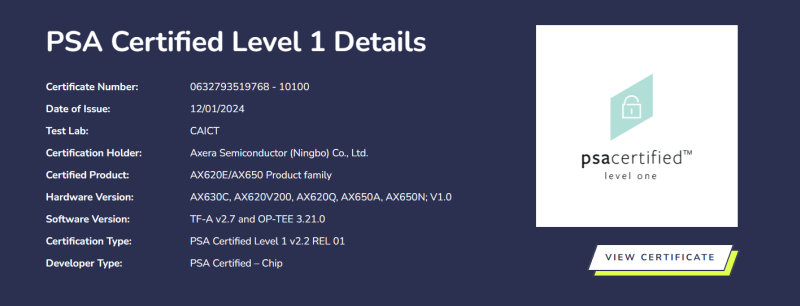 爱芯元智AX620E/AX650系列芯片通过PSA Certified安全认证