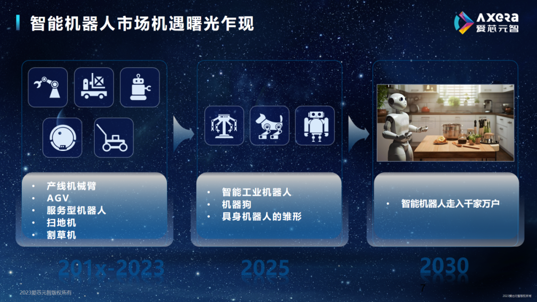面对滚滚而来的智能芯片浪潮,爱芯元智已经做好准备,在智能驾驶和智能IoT领域广泛布局。其中,在智能驾驶领域,爱芯元智从量产化思维出发,目前专注于L2和L2++赛道,推出了ADAS前视一体机、行泊一体域控制器、CMS等车载应用场景解决方案,未来还将推出更高级别智能驾驶的产品方案。而在智能IoT领域,爱芯元智也已经从智能摄像头、AI板卡等产品切入,逐步探索产线机器人以及具身智能机器人等更高阶的应用。