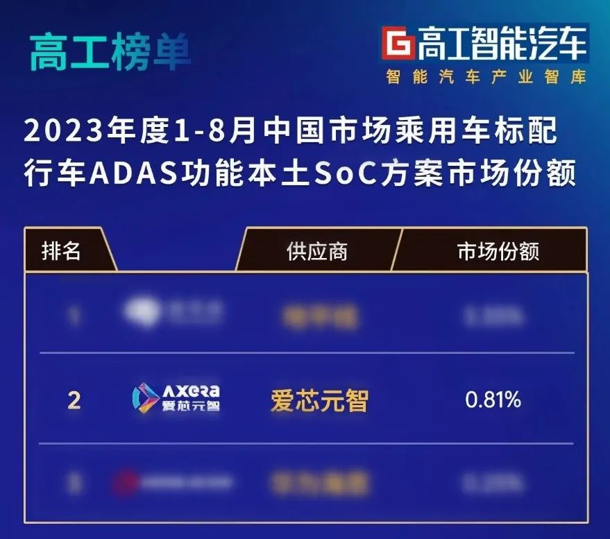 “AI-ISP + NPU”的双剑合璧构成了爱芯元智的技术护城河,不断丰富了产品线,从19年成立到现在,爱芯元智的AI芯片已经在行业内大规模出货,“高工智能汽车”新进出炉的榜单显示,2023年1-8月中国市场乘用车标配行车ADAS功能本土SoC方案市场份额中,爱芯元智位居第二。